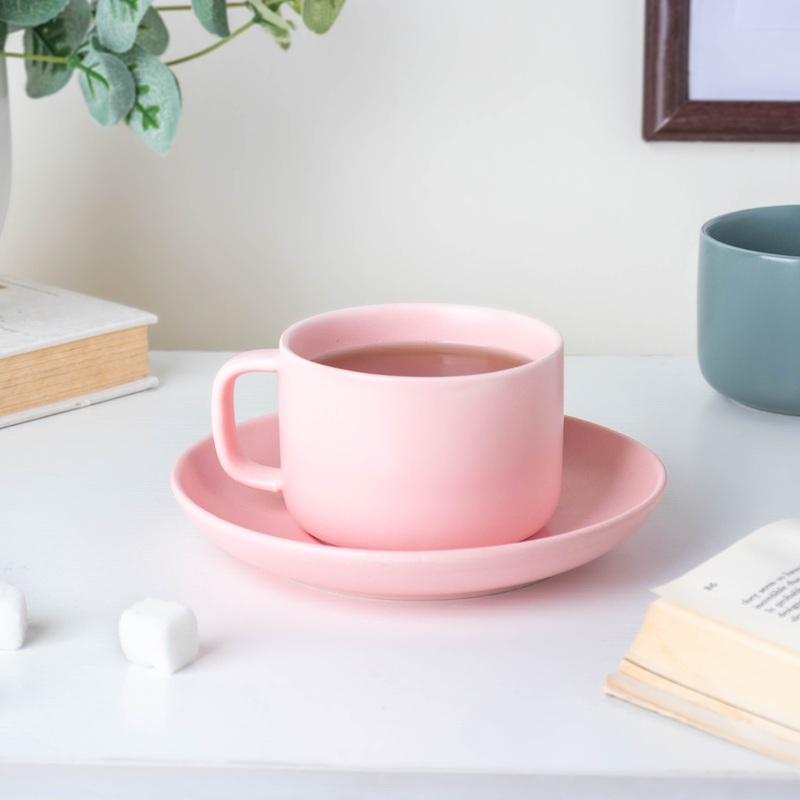 The ceramic cup is an excellent addition to any high-tea gathering. The pink cup comes with a c-shaped handle and a saucer to serve snacks or biscuits beside it. The cup is made to enhance the appearance of any study desk or tabletop. The elegant color of the cup complements the appearance of the beverages poured into it. Tea, coffee, or hot chocolate can all be served in the ceramic cup. Whether it’s for a big occasion or an everyday tea time gathering, the cup is ideal.