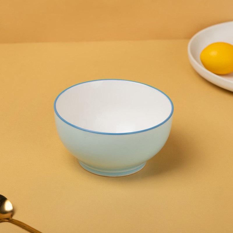 The pastel blue ceramic bowl comes with a colorful rim. The side bowl is designed to elevate the look of its delicacies. Serve tiny quantities of lentils or curries or snacks to visitors or family members in the ceramic bowl at social gatherings or get-togethers. Salads or fresh fruit can be served in the dish as well.
