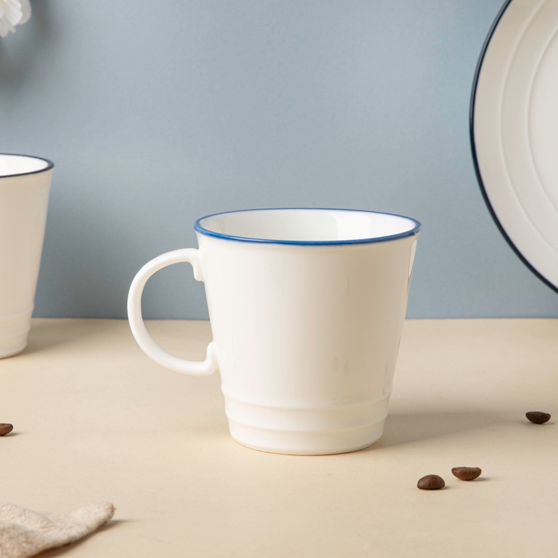 The white ceramic cup is the perfect addition to your next high-tea get-together. The cup is meant to lend a touch of sophistication to any study desk or tabletop, with a blue rim and a c-shaped handle. The cup’s classic white tint matches the look of the drinks poured into it. The ceramic cup can be used to serve tea, coffee, or hot chocolate. The cup is appropriate for every occasion, whether it’s a special event or a routine teatime gathering.