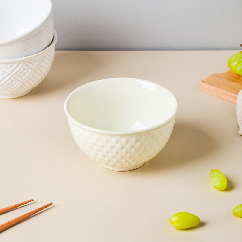 The exterior surface of the ceramic bowl is adorned with unique diamond motifs. The side bowl is made to go with the delicacies that are presented in it. At social gatherings, guests or family members might be served a small portion of lentils or curries in the patterned porcelain bowl. In addition to salads and fruits, the dish may be used to serve other cuisines.