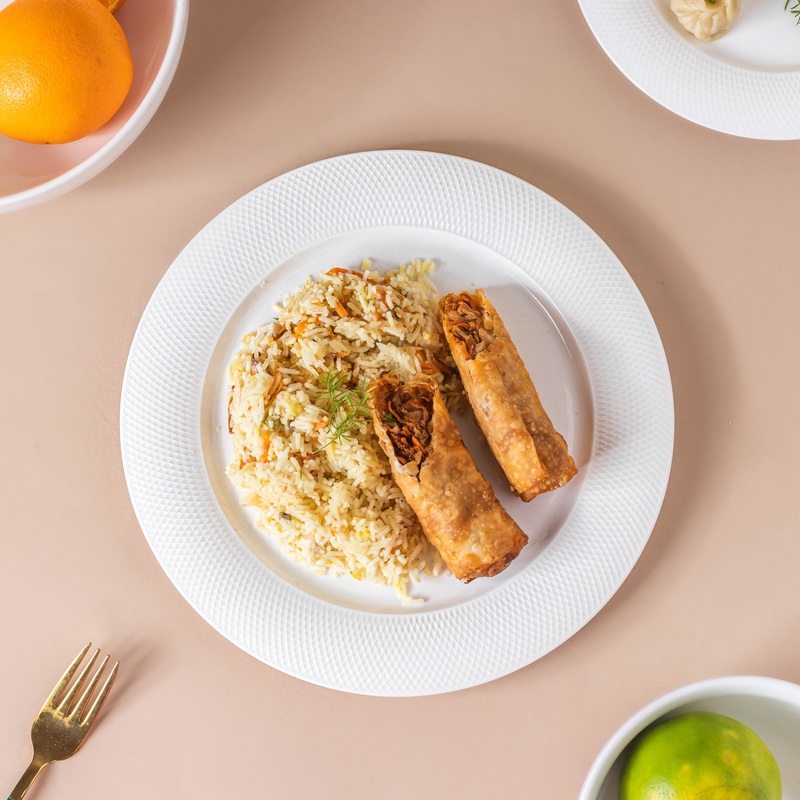 What is more classic than a white ceramic dinner plate? A textured crisscross pattern adorns the rims of the white plate to give it that extra bit of style and poise. On the white plate, noodles, risotto, and other similar dishes look great. The ceramic dish can also be used as a platter to offer appetizers, snacks, or munchies to visitors during house parties or get-togethers.