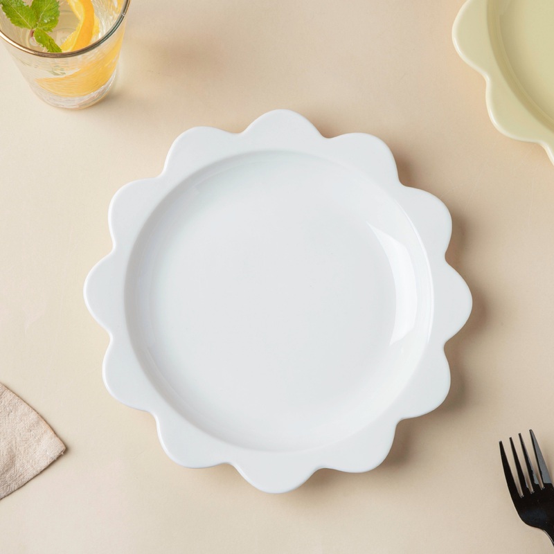 The white glazed finish on the ceramic plates makes them ideal for neutral color palettes or an earthy table setting. On the exquisite plates, serve freshly cooked kebabs, sandwiches, pizza slices, and more. The plate has a floral-shaped rim, making it a quirky and exciting addition to the existing ceramicware collection.