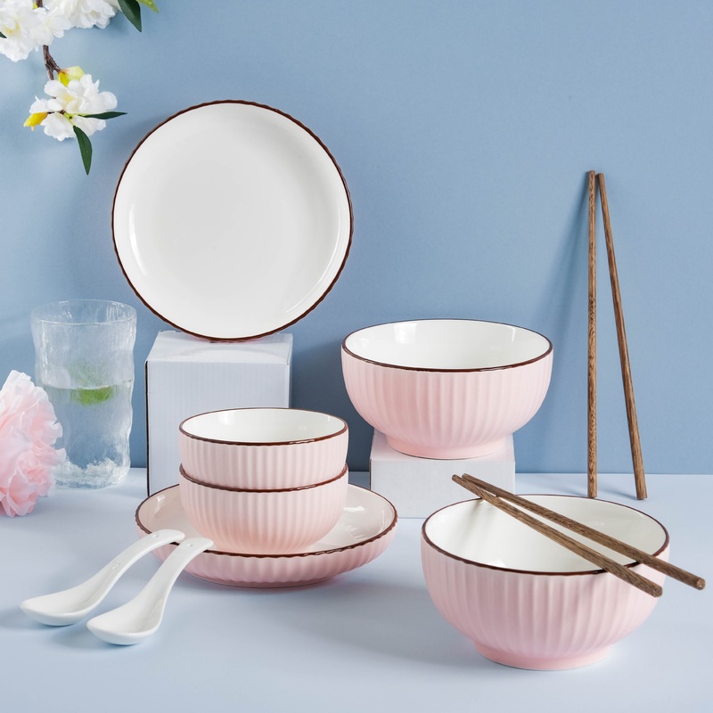 Crafted with the highest quality ceramic and intuitively designed to modernize one’s home, the rosy pink crockery set consists of 2 serving bowls to present home-cooked dishes with ease, 2 pasta plates with raised rims to eat in comfort, 2 soup bowls which may also be used to eat breakfast or dessert, 2 soup spoons and 2 pairs of chopsticks.