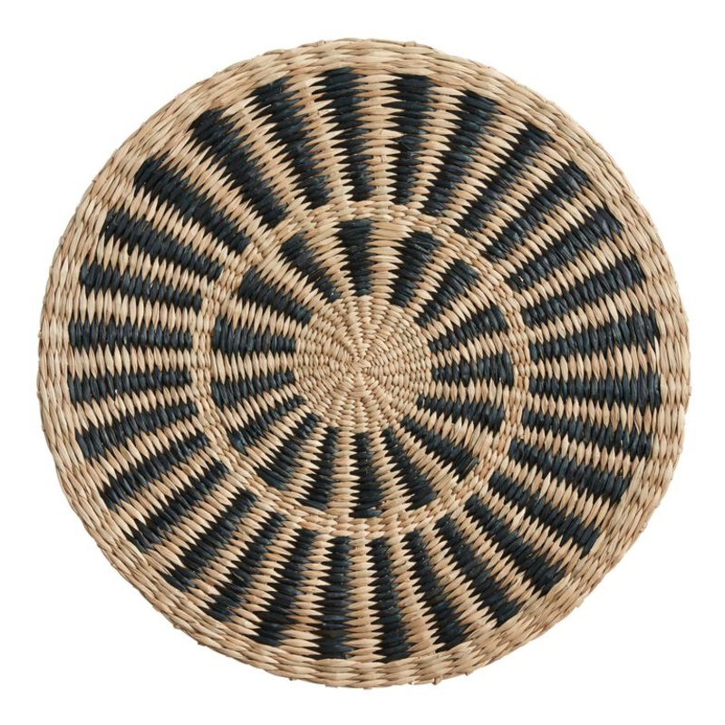 Crafted in Vietnam from seagrass, our exclusive placemat features a stunning black sunray design woven into the neutral tones of the natural fibers. Buy multiples to set an uplifting indoor or outdoor dining table full of natural texture or use one or two as accents for serveware.