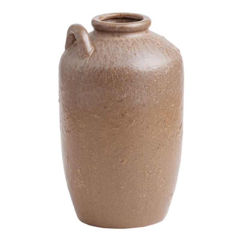 Finished in a rich reactive glaze for a poured-over, ombre effect, this tall ceramic vase warms your decor in shades of brown, tan and rust orange. Its strong, simple shape is accented with a single asymmetrical handle and makes an elegant home for tall branches and grasses. With texture that’s simultaneously bumpy and smooth, this stoneware jug brings earthy dimension to your space.