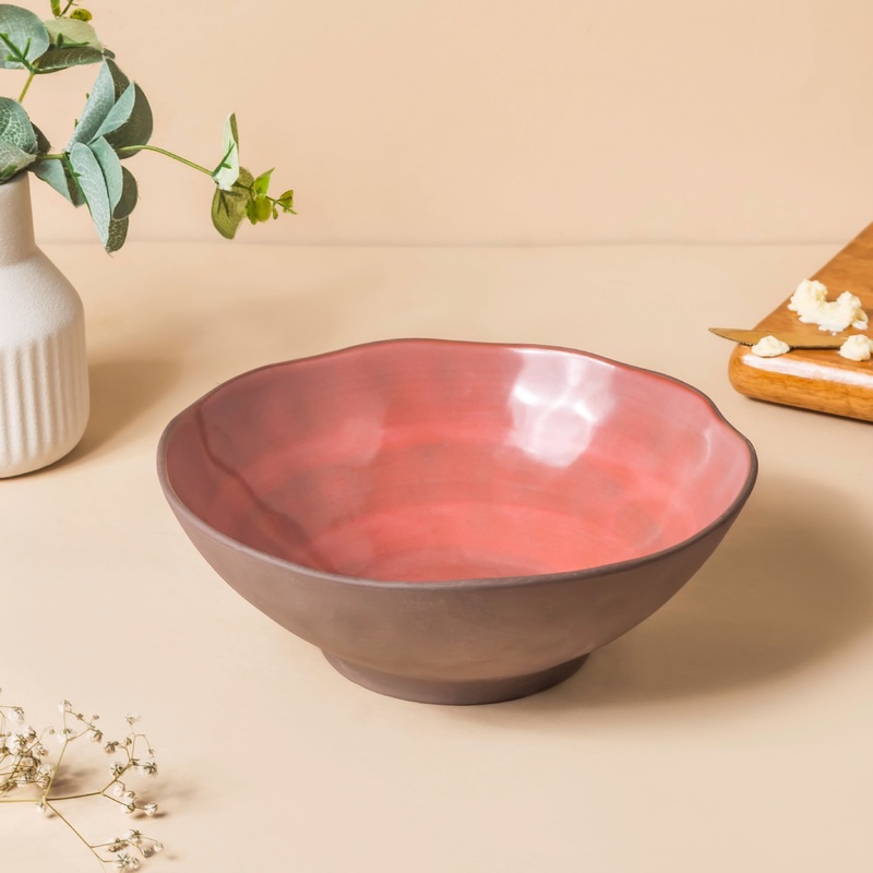 The rustic serving bowl looks appealing with a blush pink glazed interior and a brownish matt exterior. Complete the household range of serve ware with the rustic serving bowls that are available in 2 distinct sizes. The serving bowls have an earthy look to add a rustic vibe to the table.