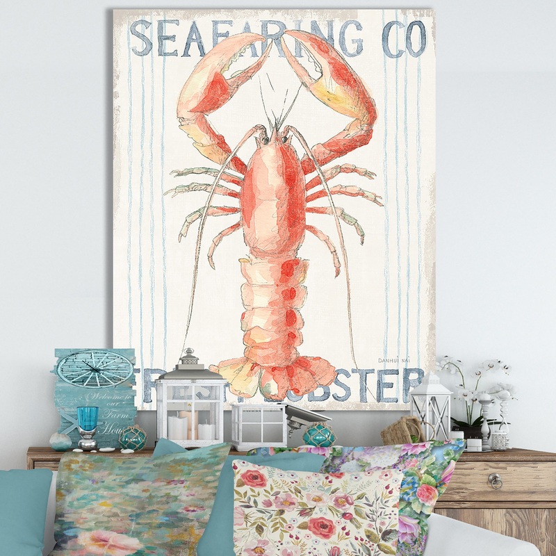 Convey lighthearted fun with this seafood-inspired wall art depicting a bright lobster against a distressed backdrop to complement your nautical, coastal, or cottage theme. This wall art comes printed on cotton canvas for crisp results, and it features fade-resistant inks to preserve its fresh appearance. Stretched around a strong wooden frame for a staple-free finish and a bump-free image, this gallery-wrapped wall art looks dazzling wherever you hang it indoors. Exhibit it right away on your wall thanks to the convenient, ready-to-hang design.
