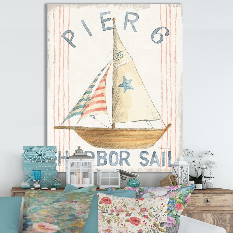 Bring a little of the seashore into your home with this ‘RW Floursack Nautical VII’ canvas wall art by Designart. Printed with a large sailboat and Pier 6 Harbor Sail logo, this printed art adds a nautical vibe to your home office or dining room. The premium-quality cotton canvas provides durability, while the high-quality ink creates a stunning image that’s fade resistant to keep it looking new. The print is stretched over a sub frame to keep it tight and prevent it from fraying at the edges.