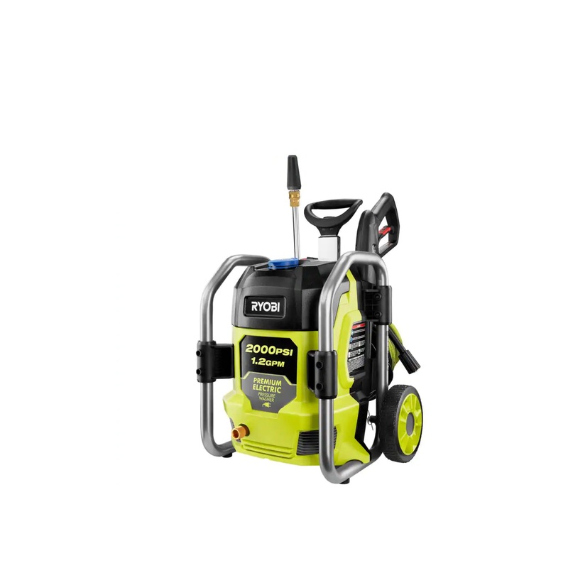The RYOBI 2000 psi 1.2 GPM Electric Pressure Washer is powerful and compact, making it perfect to use around the home. This pressure washer features a durable metal roll cage frame, wheels and a telescoping handle allowing for easy transport. The 13 Amp electric motor delivers 2000 psi of force for cleaning of driveways, decks, windows, boats, campers and other areas around the house. A powerful turbo nozzle, 15 nozzle and soap nozzle are all stored on the unit for user convenience. An on-board detergent tank offers easy soap application and the 25 ft. non-marring hose allows you to access even more area. The RYOBI 2000 psi Electric Pressure Washer is backed by a 3-year warranty.