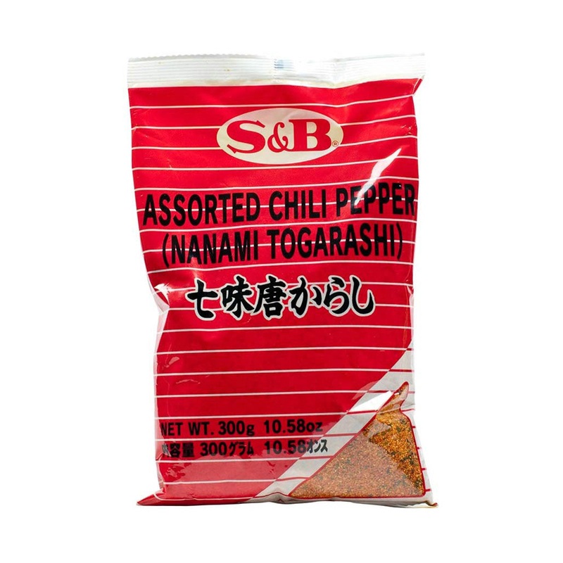 Nanami Togarashi (assorted chili pepper) is a Japanese traditional seasoning with a blend of 7 spices including red chili pepper as a main ingredient. S&B Assorted Chili Pepper features the rich aroma and color of a balanced blend of red chili pepper, orange peel, black sesame, white sesame, Japanese pepper, ginger and seaweed. It can be used as a topping for noodles such as udon, uoba, or beef, chicken, pork and fish dishes in place of pepper or mustard, or on sushi rolls.