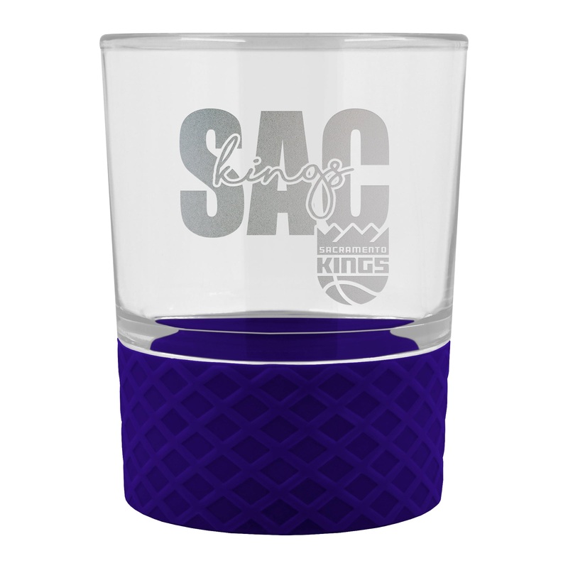 This 14 oz COMMISSIONER rocks glass is perfect for enjoying any beverage over ice. The glass is decorated with laser etched team graphics and team color coordinated silicone base