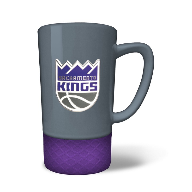 The 18 oz. JUMP team color ceramic coffee mug features a silicone base in coordinating team color and a hand crafted metal emblem.