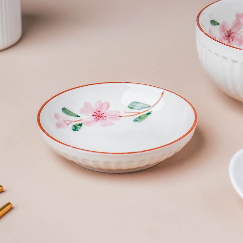 With floral prints of cherry blossom in pink, the ceramic plate can easily serve scrumptious pakoras or freshly cut salads. One can also use the small plate to offer mouth refreshments at the end of a meal.