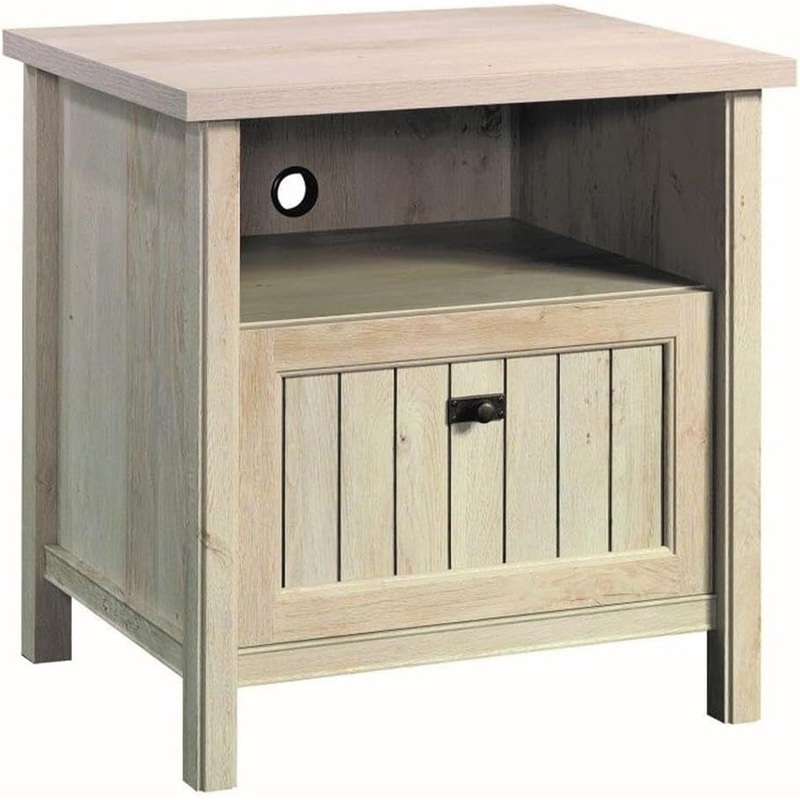A bedroom just isnt complete without the perfect bedside companion. Give your favorite snoozing room the finishing touch it needs with this nightstand from the Costa collection. This nightstand with drawer offers a spacious top surface that provides you with the ideal amount of space for all your bedside needs like a lamp, your alarm clock, a refreshing cup of water and your smartphone. This nightstand with open storage features a cubbyhole opening for easy access storage of items like your favorite book and the TV remote. This beside table with storage also features a drawer that glides on metal runners and safety stops. Its ideal for storing your glasses, phone charger, and more. Framed, slat-front detailing provides a distinct aesthetic. This single drawer nightstand can accommodate optional Hidden Wireless Qi Charger by Eggtronics 425905 (sold separately visit sauder.com for more information). Quick and easy assembly with a T-lock drawer system and slide-on moldings helps assist you in putting together your new nightstand. A Chalked Chestnut finish gives a timeless feel that instantly revamps your bedroom.