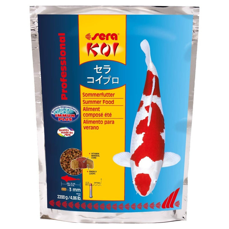 For high usability, less water pollution and clear water.Optimal fatty acid composition with omega-3 fatty acids.Balanced carbohydrate content, rich in high -quality fish protein.Kern: Contains the Sera Vital-Immun Protect formula, manufactured in the particularly gentle low temperature process.Ring: For the respective season optimized feed mix for a diet that Koi naturally need.Sera Koi Professional – the first coexisted feed for Koi.Fr eine hohe Verwertbarkeit, weniger Wasserbelastung und klares Wasser. Optimale Fettsure-Zusammensetzung mit Omega-3-Fettsuren. Ausgewogener Kohlenhydratanteil, reich an hochwertigem Fischprotein. Kern: Enthlt die sera Vital-Immun-Protect-Formel, hergestellt im besonders schonenden Niedrigtemperatur-Verfahren. Ring: Fr die jeweilige Jahreszeit optimierte Futtermischung fr eine Ernhrung, die Koi von Natur aus brauchen. sera KOI Professional das erste coextrudierte Futter fr Koi.sera Koi Professional Sommerfutter 2,2 kg – Koifutter mit der Extraportion Energie bei Temperaturen ber 17C, Futter mit sehr hoher Verwertung, geringere Wasserbelastung & damit weniger Algen