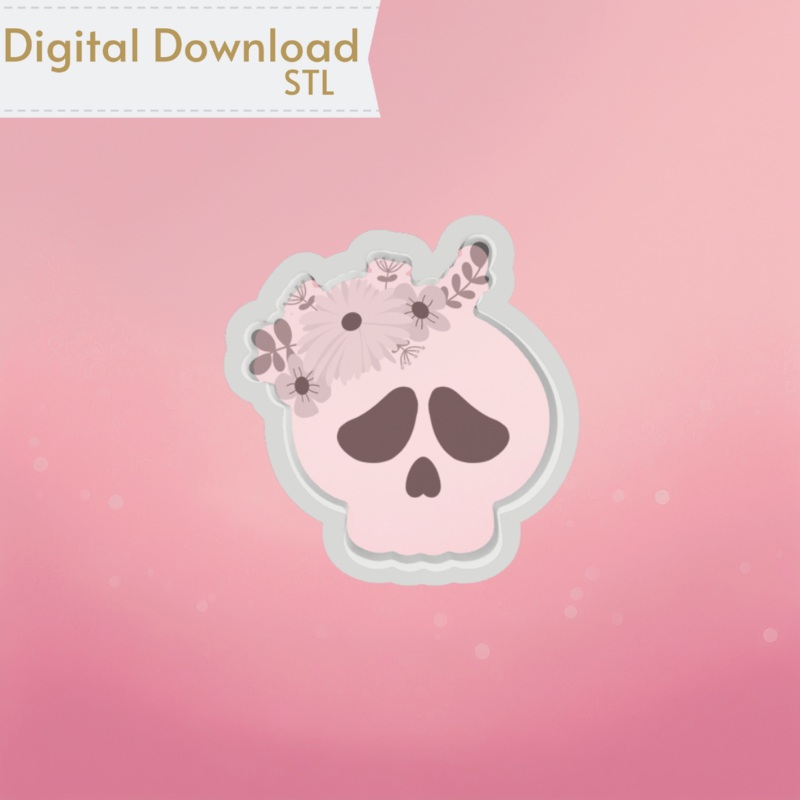 Skull with Flowers Cookie Cutter STLAdd a little "dead-ication" to your baking with our Skull with Flowers Cookie Cutter. Perfect for Halloween treats or just adding some edge to your desserts. (After all, who says sugar skulls can't have flowers too?!)Mea
