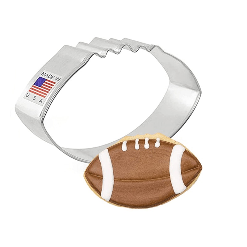 Small Football Cookie CutterSize: 3 1/2" x 2 1/8"Made in the USACertified Safe for Lead and Cadmium. US made tin-plated Steel.Hand wash, not dishwasher safe.Handy Drying Tip For Preventing RustWash your cookie cutters and baking sheet(s) immediately after
