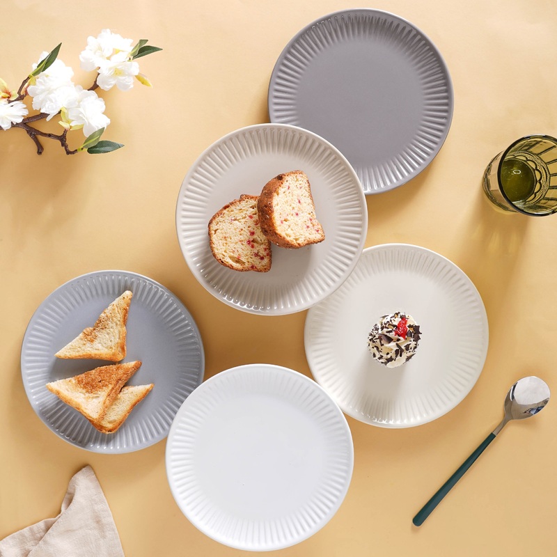 Ceramic dinner plates that are available in a myriad of solid shades, will blend in easily with a modern and contemporary dinner set-up. The plate can form a complete dinner set with variants of pasta plate, snack plate, bowl, and side dish. The ceramic dinnerware exhibit elegance and can be used to serve main course meals as well as snacks at all times of the day. The neutral tones (off-white, dark grey, navajo white, ivory, and light grey) of the dinner plates can add sophistication to any table setting. The plates are microwave safe. The shades of the round ceramic plates may appear different under different lights.