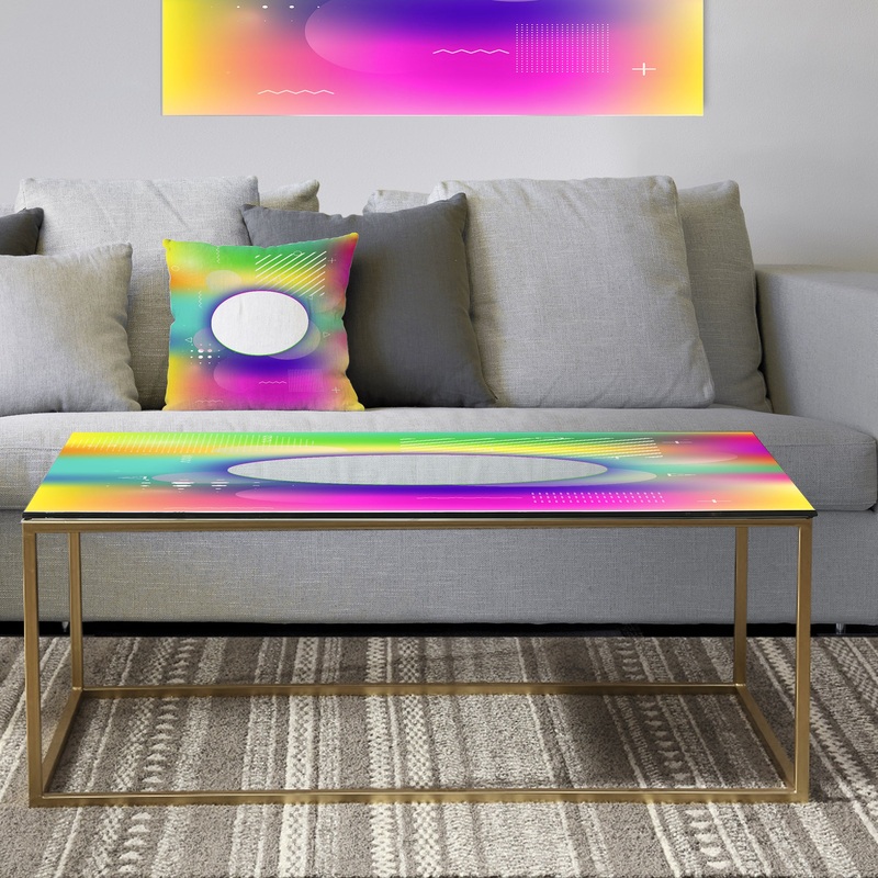 Cheer up your sitting area decor with this coffee table featuring a brightly-colored abstract pattern created using high-density Italian inks for added vibrancy. The design printed beneath the glass table top ensures damage-free use, lasting artistic displ