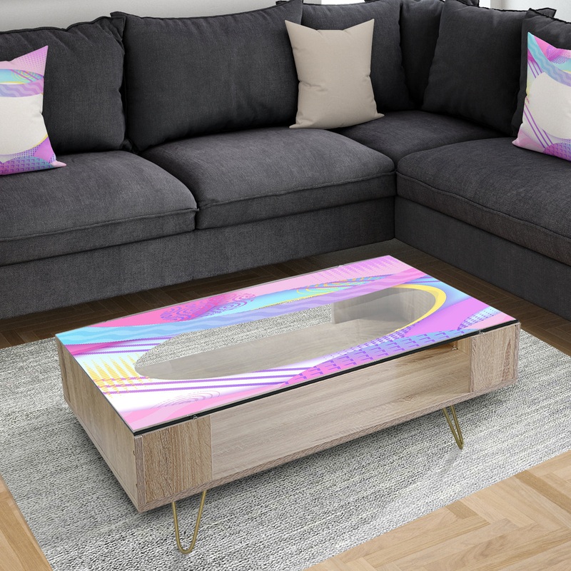 Spark visual interest in your home design with the modern ‘Spacy Dimensions 10’ coffee table from Designart. The unique clear, oval design on top is surrounded by a pretty pastel design and offers a viewpoint to the shelf below, where you can place a plant or another decor item for a unique visual effect.