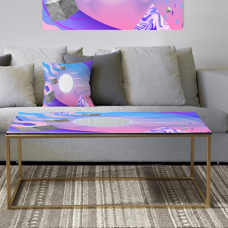 Allude to lunar landscapes or fantasy worlds with this ‘Spacey Dimensions 2’ coffee table by Designart. A rich palette of pinks, blues, and lavenders comes to life with definition thanks to lush Italian inks applied to the glass tabletop’s underside for lasting crispness and color. An open base with all metal construction provides a sturdy, stable foundation.