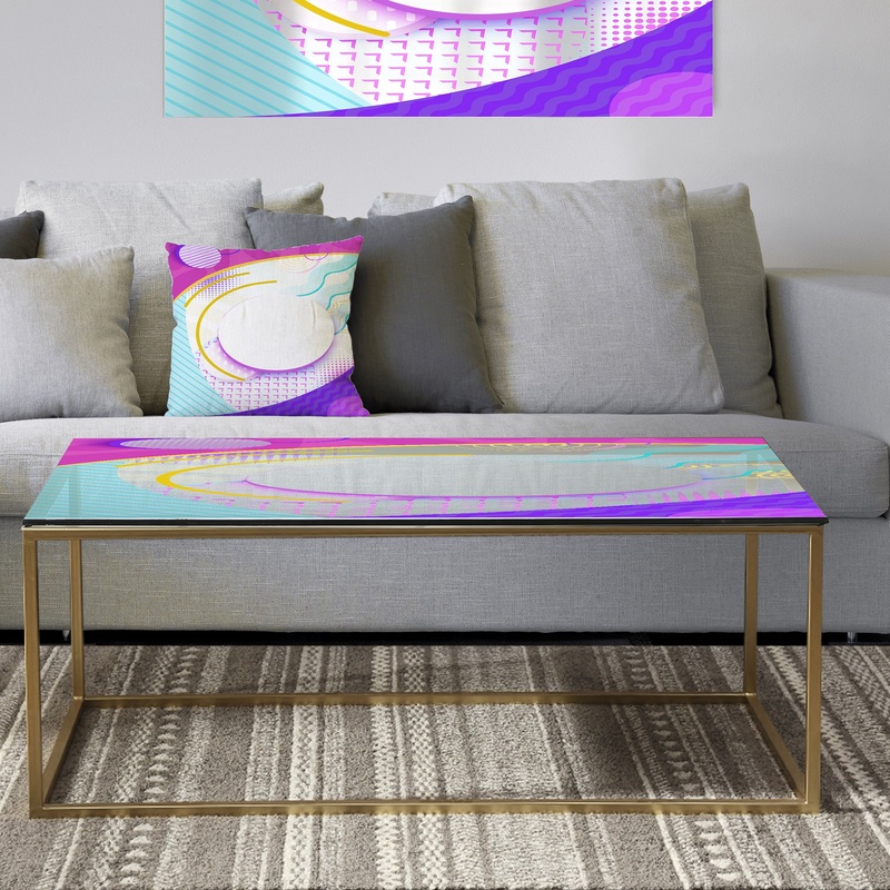Set the mood to modern and spacy with this eclectic coffee table by Designart. The metal and glass fabrication keeps with the modern vibe while ensuring the strength and longevity of this table, and vivid colors splash along the underside of the glass tabletop to produce a vivid image that doesn’t scratch.