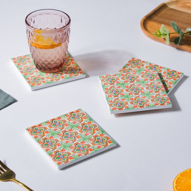 The square ceramic tile coaster appears to be nothing less than a piece of art-inspired dcor at first glance. The brightly-hued set of 4 matte finished hand-painted pattern coasters is skillfully molded using artisanal methods and vibrant colors. The coaster can also be utilized as a component of home dcor to fill up open spaces and display breathtaking artwork. The ceramic coasters can be used as a coaster for glassware, and dip bowls.