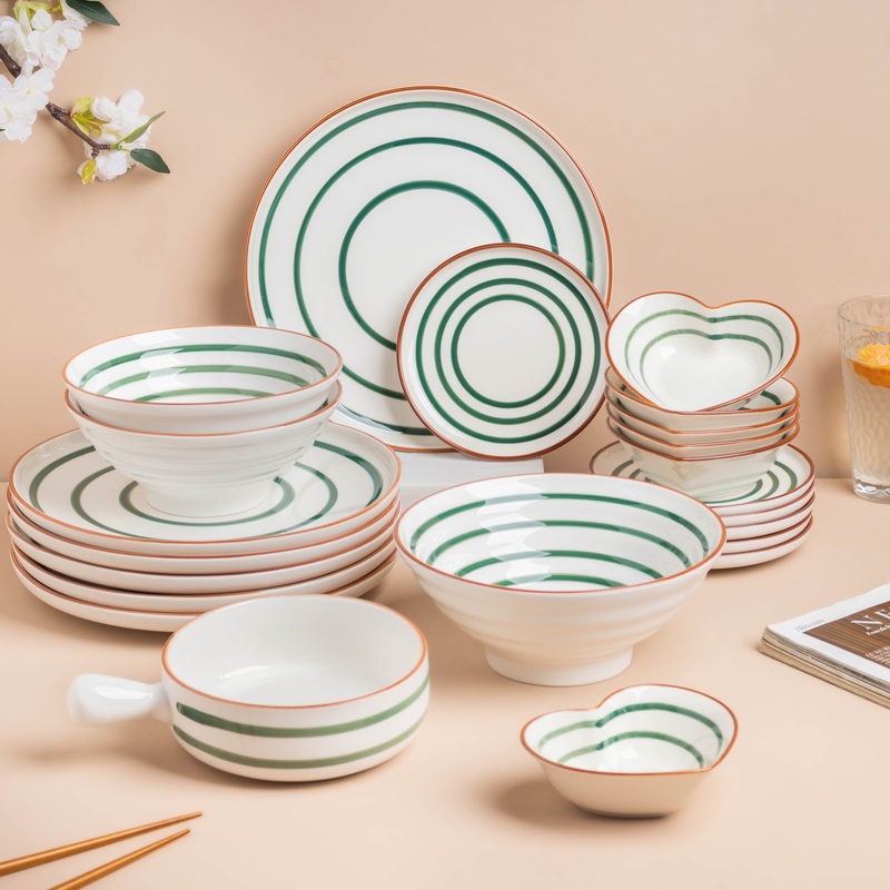 Nestip: Pair the ceramic dinner set with green-colored dinnerware for a courtly setup.