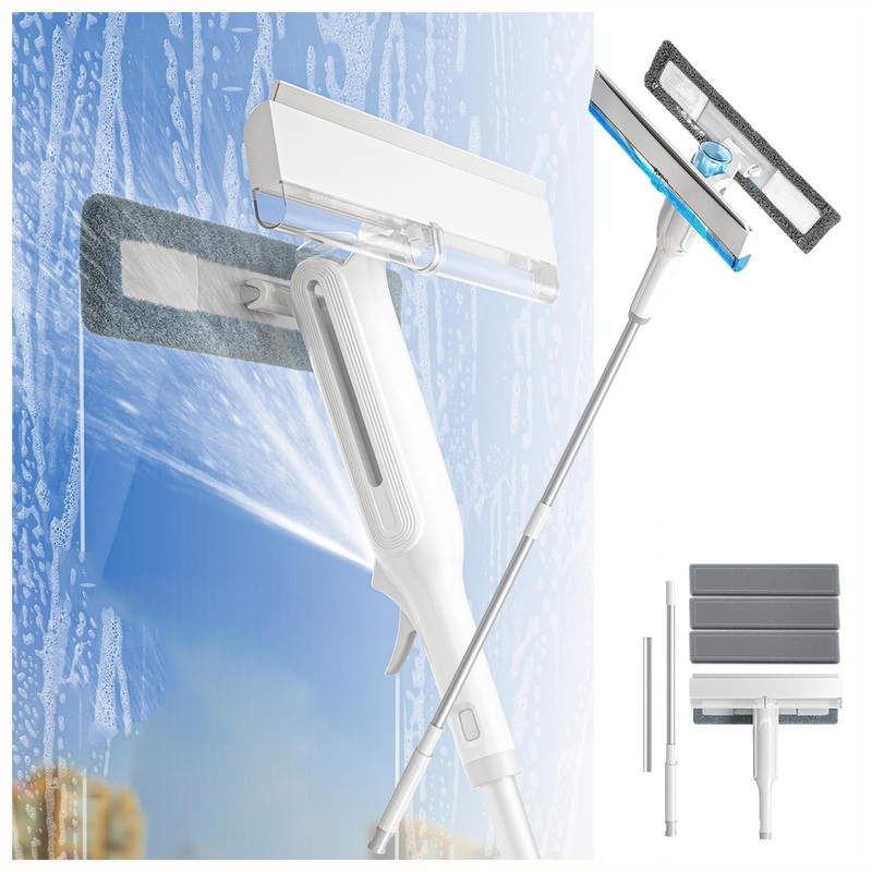 Our always focuses on household cleaning products, aiming to discover and create simpler and more practical products, making our cleaning work easier and more efficient.Cleaning is a daily task that we need to do.A convenient tool can help you get twice the result with half the effort. Besides windows,window cleaning squeegee kit is versatile and suitable for mirrors, glass doors, shower screens, and various other glass surfaces. It is a practical cleaning tool for any glass. Specification Name:Window Squeegee for Home Material: Abs Plastic soft Silicone aluminum Pole Gross Weight: 600g Size: 24 132cm 9.4 52in Package: 1 squeegee for Window Cleaning 3 microfiber Scrubber Pads Warm tip: The window squeegee can be easily assembled by yourself. If you encounter any quality problems, please contact us by email, we will try our best to help you. (before the window squeegee left factory, each window squeegee has been tested for water spraying. So it is normal that there is water left).Premium extension pole:Window cleaning kit with removable aluminum extension pole,sturdy and durable,not easy to rust and break,long service life.Which can be individually removed to adjust the length that extends up to 52” 132cm. Reusable and durable:Featuring a unique sponge pad and premium silicone soft scraping head.That produces foam when wet,this window washing kit makes cleaning easy. Upgrade design:This squeegee for window cleaning features a spray cleaning function and separate tanks for clean water and sewage.The waste water tank can collect about 60 of the waste water.It without soiling the ground,saving effort and worry. 2 levels of spray design:The window squeegee with an elastic wrench,fill the reservoir with about of water or cleaning solution.Pressing the wrench can evenly spray the cleaning solution stored in the pipe on the glass surface. 4-in-1 design:This window squeegee for home comes with a 150ml spray bottle,150ml sewage collector,10” treak-free squeegee blades and replaceable microfiber cleaning cloths to clean all kinds of stains more effectively.