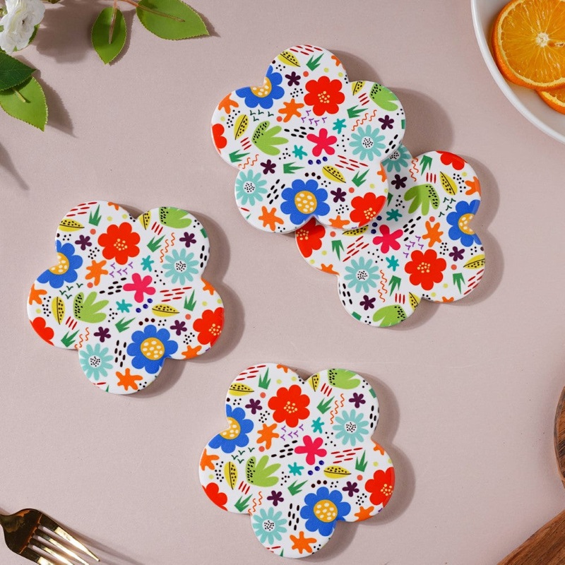 Springy Zest Flower Ceramic Coaster Set Of 4