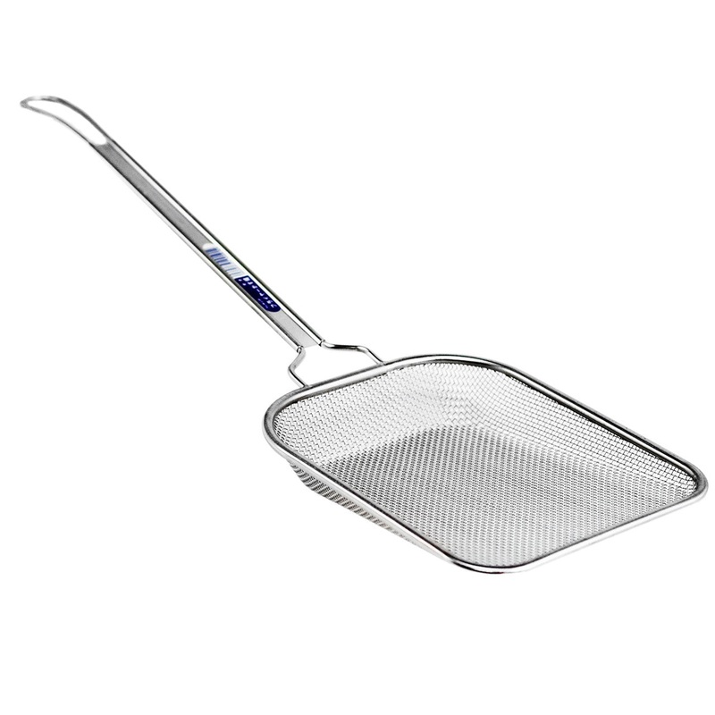 Use this coarse mesh skimmer to scoop out foods from oil or boiling water.