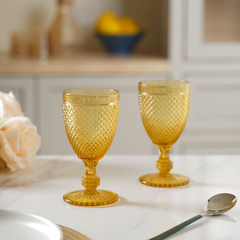 A glass with an aristocratic design and a royal aura is undoubtedly needed when a table decor transformation is demanded on the dinner table. Drinkware is such a small segment of what can really be done for a complete look change, but it’s so impactful and important. With all parties and get-togethers taking place at home, who would not appreciate a drinkware upgrade. Serve any drink of one’s choice in the exquisite glassware and win compliments from visitors and guests. The glass has a textured outer structure and a long stem, making it easy to hold and pass. The yellow tint definitely makes the glasses a unique range of drinkware to own.