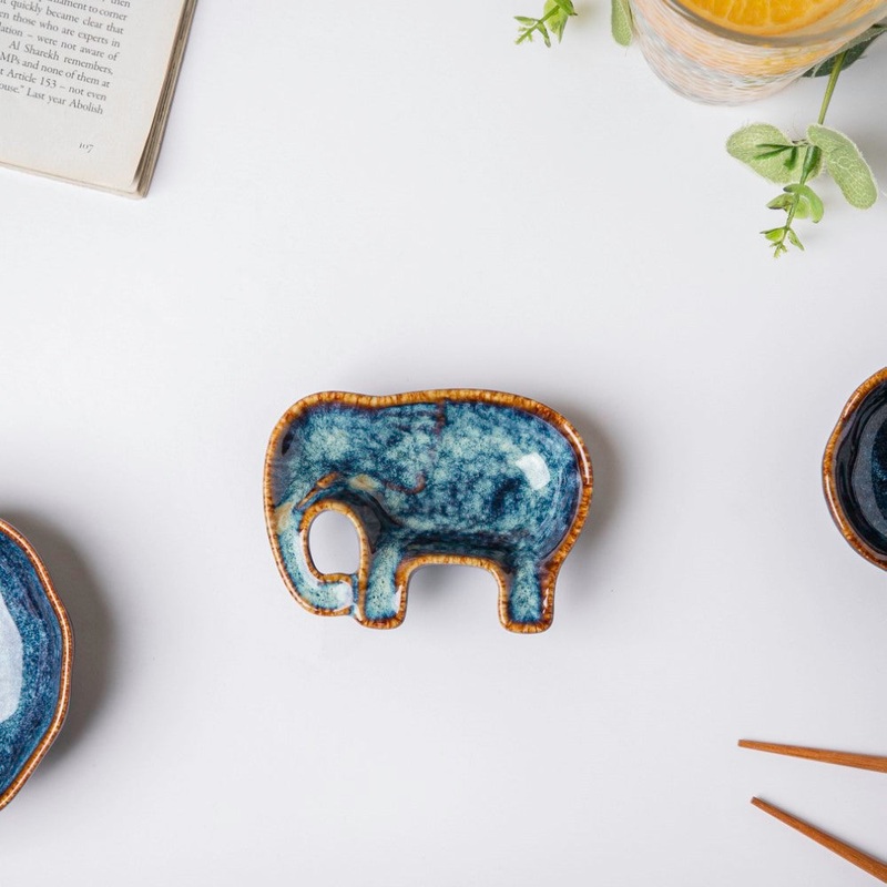 The elephant-shaped dip bowl is a stunning new addition to our collection of ceramics. The earthenware dip bowl is painted in a tranquilizing blue hue, just like the composed nature of elephants. The ceramic used in molding the dip bowl is packed with an elephant’s strength- it’s sturdy and durable. The stoneware dip bowl can be utilized to serve various kinds of sauces and dips with snacks.
