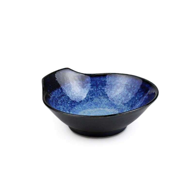 This elegant Tonsui bowl features a mesmerizing blue gradation reminiscent of the galaxy. This color hue matches cobalt grazed donabe pots, or same styled plates