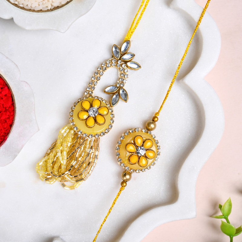 Be the first to review “Sunflower Yellow Rakhi Lumba Set”