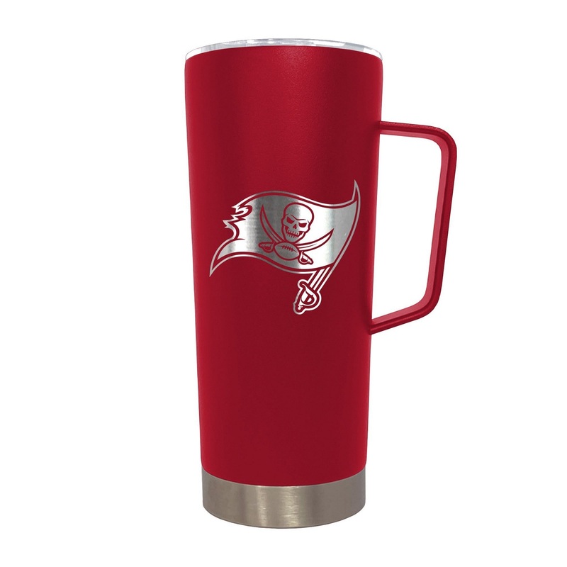 This 18 oz. ROADIE with Handle Travel Mug is made of vacuum insulated stainless steel and comes in team colors with laser etched team graphics.