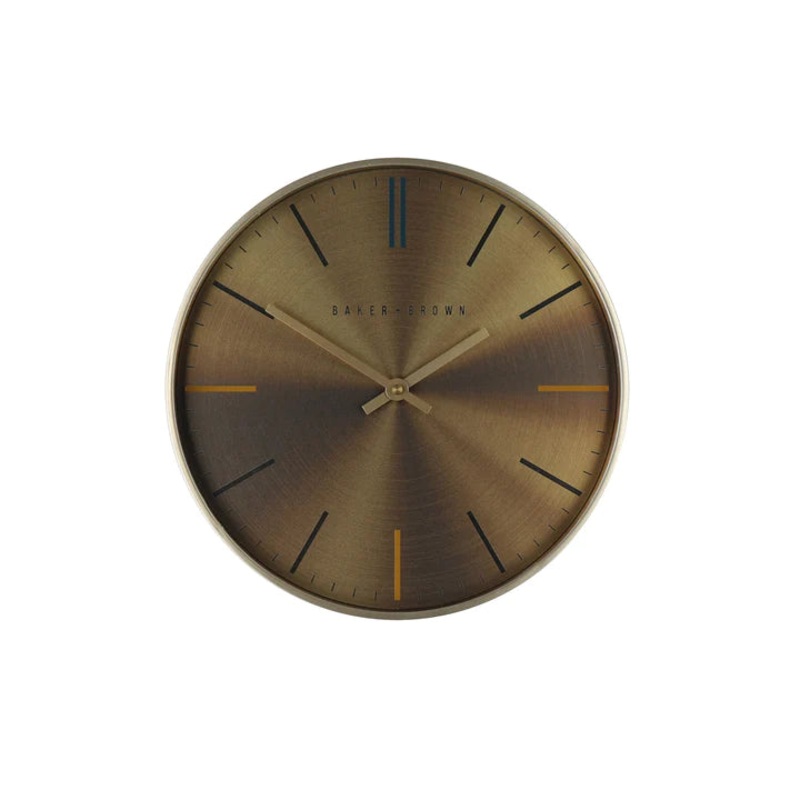 Introducing the stunning Baker and Brown Metallic Clock in Gold, a true masterpiece of timekeeping. This 30cm wall clock exudes elegance and sophistication, designed to elevate any space. Its lustrous metallic finish adds a touch of luxury, complementing any decor.