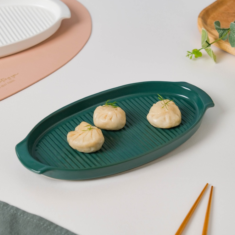 The green ceramic grill dish has a flattering silhouette to it, and it would look fantastic on any countertop. The ceramic grill plates’ single shade makes meals look more appealing, and the handles make them simpler to use. The green ceramic grill plate has grill marks in the center, allowing anybody to perfect all of their baking masterpieces. Baking pasta dishes, gratins, and lasagna or meat dishes is not only effortless, but it’s also chic when presented in the ceramic platter.