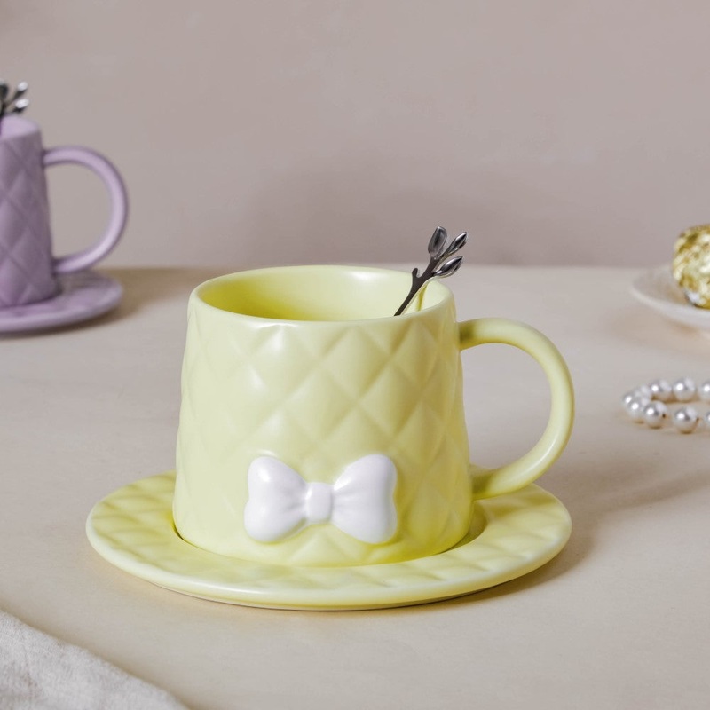 The textured bow ceramic cup with a spoon and saucer is an ideal birthday gift for modern aesthetic lovers. One can deck up one's dining table or impress the guests at a high-tea party with these cups and saucers in subtle shades. Crafted meticulously in s