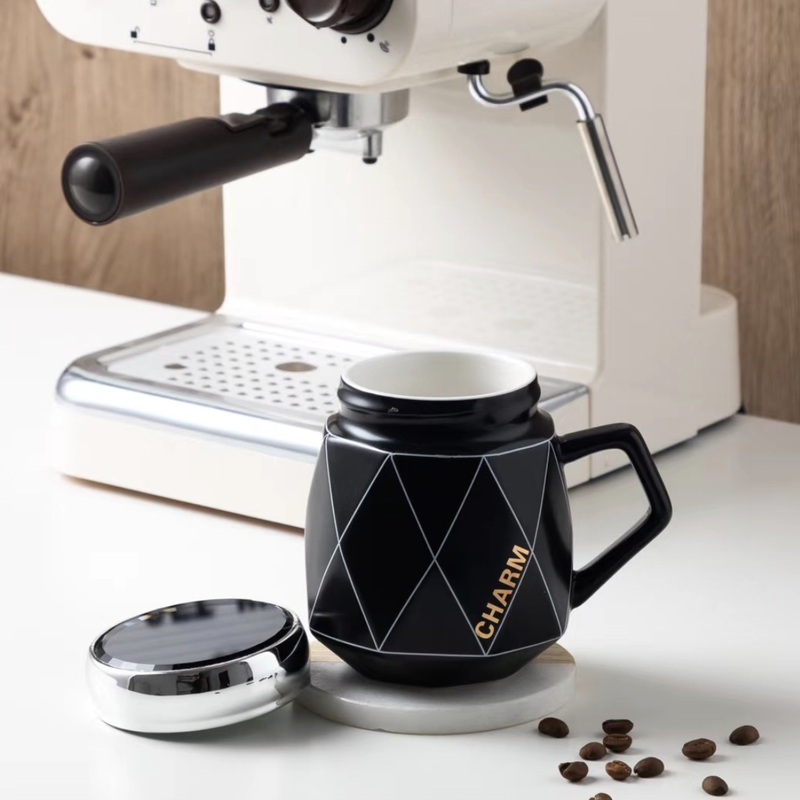 The geometric pattern black, white, and silver mug come in four design variants- charm, noble, great, and noble. The modern design ceramic mug comes in a unique shape with a narrower mouth and wider bottom. The cup makes the perfect arty gift for someone creative, be it adults or children. For people who love modern accessories around their homes, this mug is the perfect pick. The mug which comes with a well-fitted lid is great to use when one needs to store something in order to consume it later. The mug with the lid can be used in the microwave oven and the dishwasher. The diamond pattern featuring the mug adds to the beauty of the cup while the uniquely-shaped handle makes it a great choice to gift to one’s near and dear ones. One can serve both hot and cold beverages in the mug.
