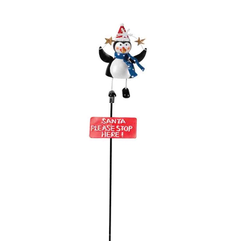 Three Kings by Smart GardenMetal painted Festive Wobbler Stake FigurinePart No.2530019Design:Percy the PenguinsFun and festive garden metal wibbly wobbler stake. Make sure santa stops at your house this christmasWith a sign saying "Santa Please Stop Here!"