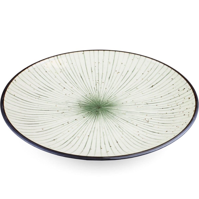 This ceramic medium plate is perfect for serving big portion of menus. The interior is designed with pinstripe that is called Tokusa technique and lots of people are fascinated with its hand drawing.