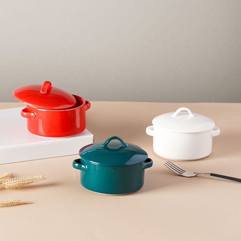Mini ceramic bowls with lid and handles on either side can be the perfect addition to any kitchen collection. While one is the classic white that goes with everything, there are two more options to choose from. Serve up souffl, mousse, mud-pies, lava cakes or even mini casseroles.