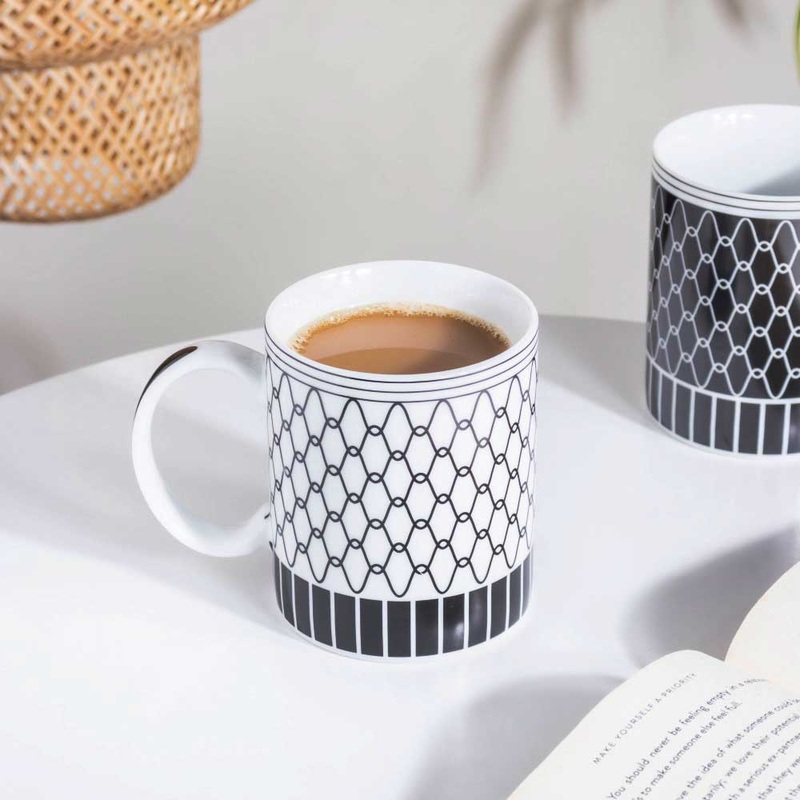 The black abstract lines on the white base of the ceramic mug makes it a spectacular piece of crockery to savour the first cup of morning tea or coffee. Available in four variants, all of them can be combined to make a birthday hamper for a dear one. This sturdy and durable cup can be paired with a white ramekin bowl or a ceramic snack bowl to serve munchies and fries along with the warm beverage.