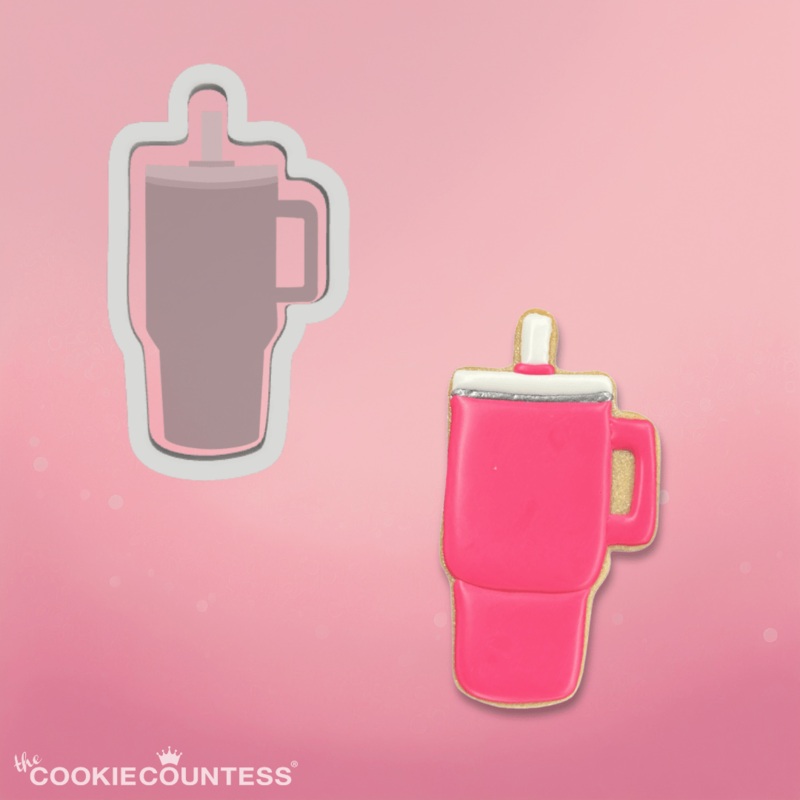 Trendy TumblerCookie CutterCutter Measures 2.5" x 4.5"All elements of this original cookie cutter were designed by The Cookie Countess with the cookie decorator in mind!An angled cutting edge makes for smooth cuts and easier clean up.Sturdy base connected