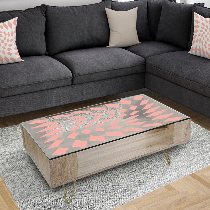 Uplift a plain interior with this chic coffee table by Designart. A monochromatic whirling geometric pattern underneath the glass top creates a sterling visual treat while adding mid-modern refinement to your abode. Offset goldtone hairpin legs assure stur