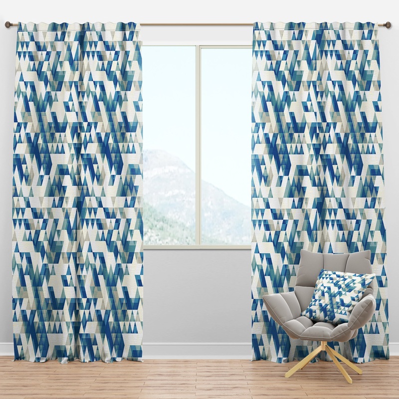Lend a stylish look to your living room with this handmade ‘Triangular Modern Geometric Blue’ curtain panel from Designart. Made from polyester faux linen fabric, this panel is semi-sheer to efficiently block out 50-percent of unwanted light to give you privacy. Designed with standard rod pockets for convenient hanging, this curtain machine washable for easy care.