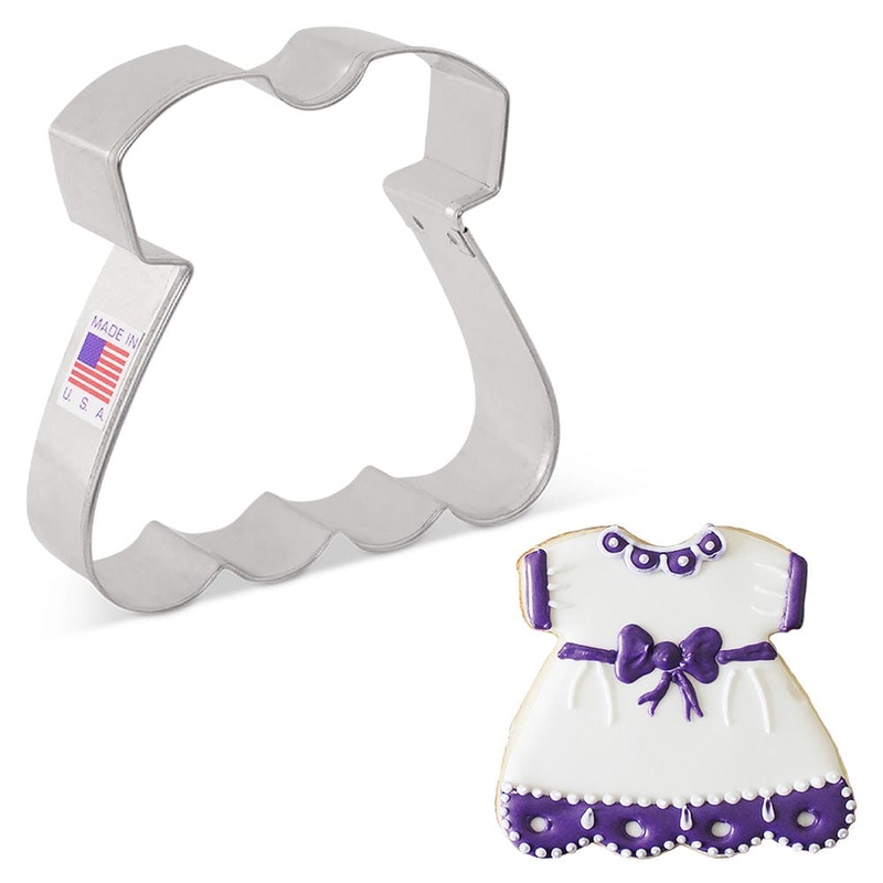 Tundes Creations Baby Dress Cookie CutterSize: 3.24" x 3.5"Made in the USACertified Safe for Lead and Cadmium. US made tin-plated Steel.Hand wash, not dishwasher safe.Handy Drying Tip For Preventing RustWash your cookie cutters and baking sheet(s) immediat