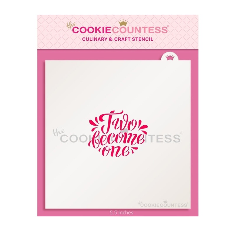 Two Become One stencil for weddings, engagements, bridal showers. Design is 2.25 x 1.76″