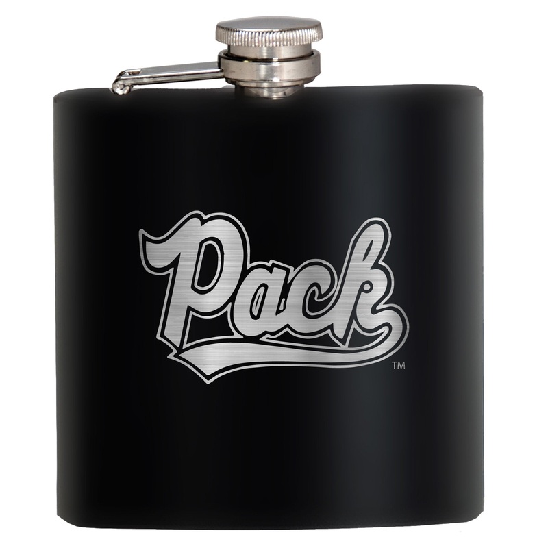 This 6 oz. STEALTH flask is contoured to match the curve of the hip or thigh and features a hinged screw-top lid. The flask features laser etched team graphics.